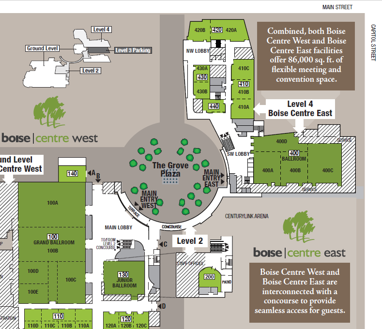 Boise Centre Layout. We will be in BC EAST, room 400.